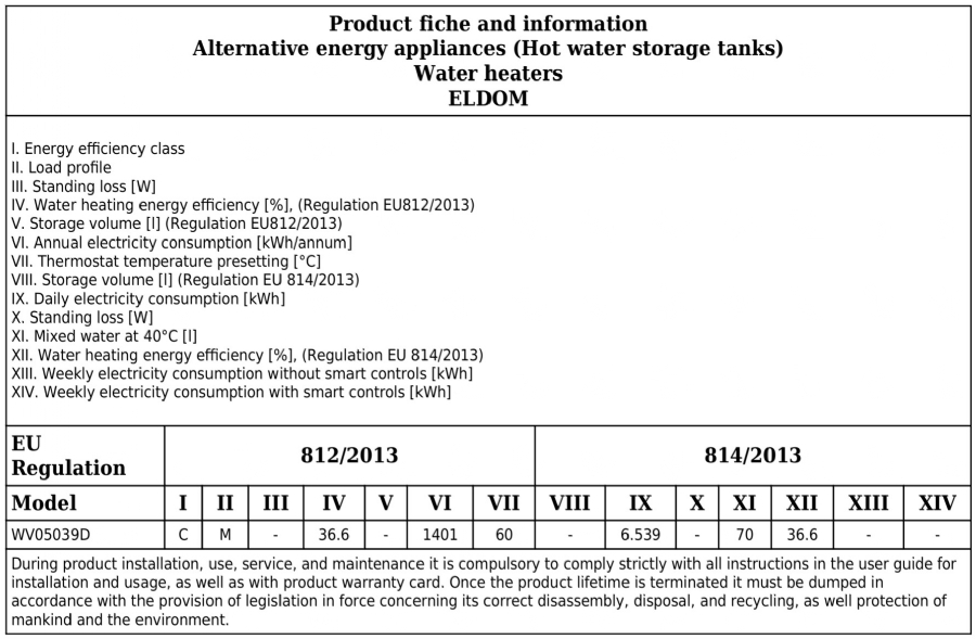 Le chauffe-eau ELDOM Eureka WVF05039FD appartient à la classe de qualité supérieure grâce à la vaste expérience d’ELDOM et à leurs technologies innovantes. Ce boiler combine des performances supérieures et une grande durabilité avec un prix attractif.